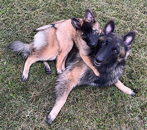 Happy and willing, she learns very quickly and loves to wrestle with her mama Turi & big sister Tala. She's already showing great herding instinct and loves retrieving and tugging. We're going to have a lot of fun together! |