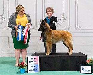 Conformation was her first official activity and she started with a bang, winning 2 points in her first show in Feb '24. She then wowed us by winning BOW/BOS at the Great Lakes BTC Specialty in March '24! Aura is a quick learner and is working on agility skills, tracking, herding, obedience and scent work. She will be busy as a Terv should be!