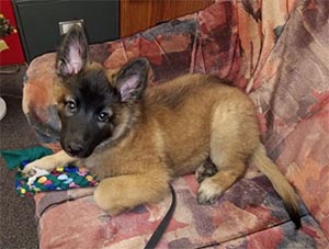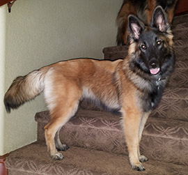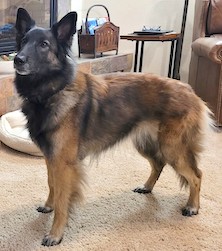 Green stayed home with her mama Trinity in CO to create a little havoc in the Athey home. Flair was a pretty little girl with a touch of evil, like all good Tervuren puppies. She grew up beautifully and finished her championship in April '19. She is helping Rick out at work too, being a Therapy dog. |
