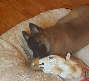 The Blue girl joined her uncle Montee in WI where she is definitely keeping Rosie on her toes! Mischief is a smart little girl who has a full agenda of activities. She has shown wonderful promise in obedience and rally, and is training in agility, tracking, and herding. |