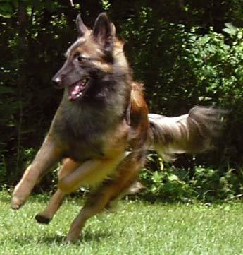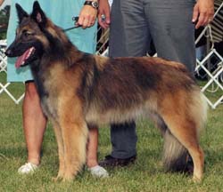Targa inherited the incessant ball drive that her gramma Raja had, which has made her very easy to reinforce in training. She is a sweetheart who loves to give kisses and get attention. Targa became the first Champion Heartlet, finishing her AKC championship on Jim's birthday in 2007! She is the dam of our Top Litter, a singleton named Bogey. In early October 2008, Targa passed her first tracking test (in only 6 minutes!) to earn her TD and become an ABTC Versatile Tervuren. She finished her CD on Saturday 3/7/09 at the GLBTC specialty, then moved up and earned her first CDX leg with a first place! |